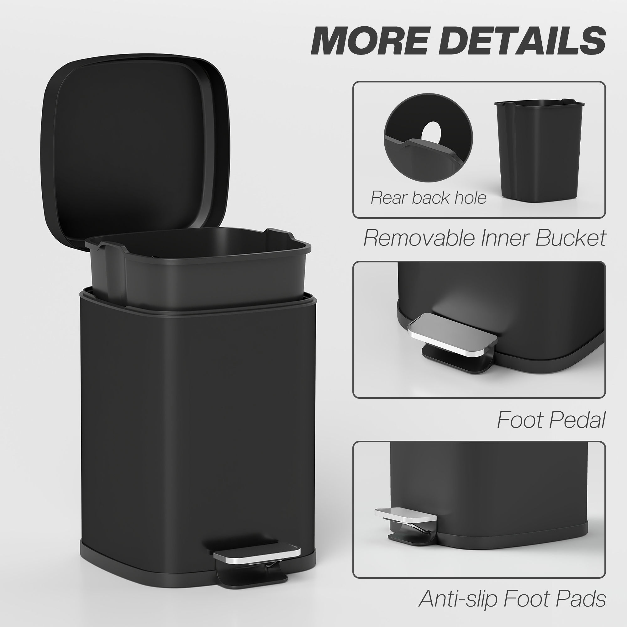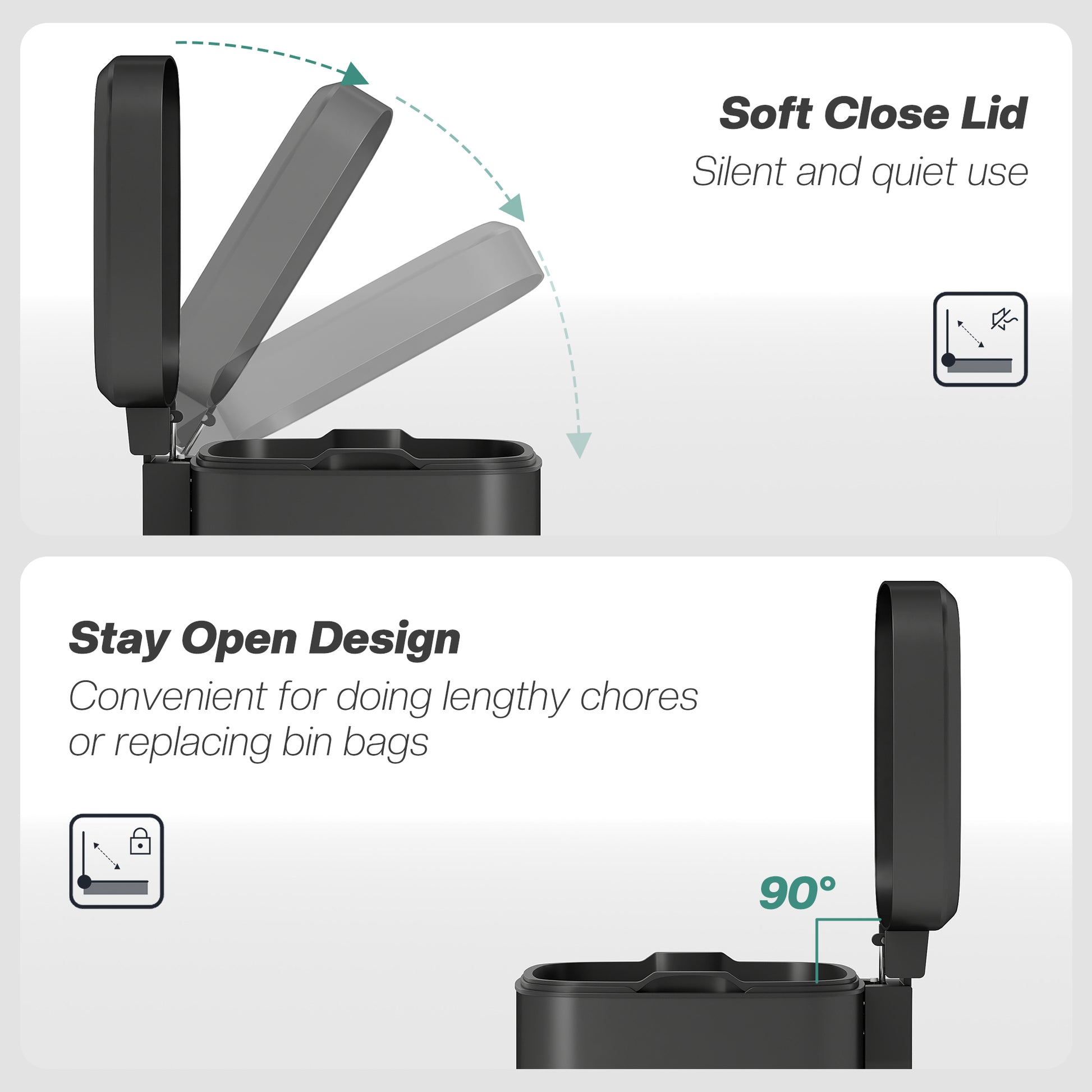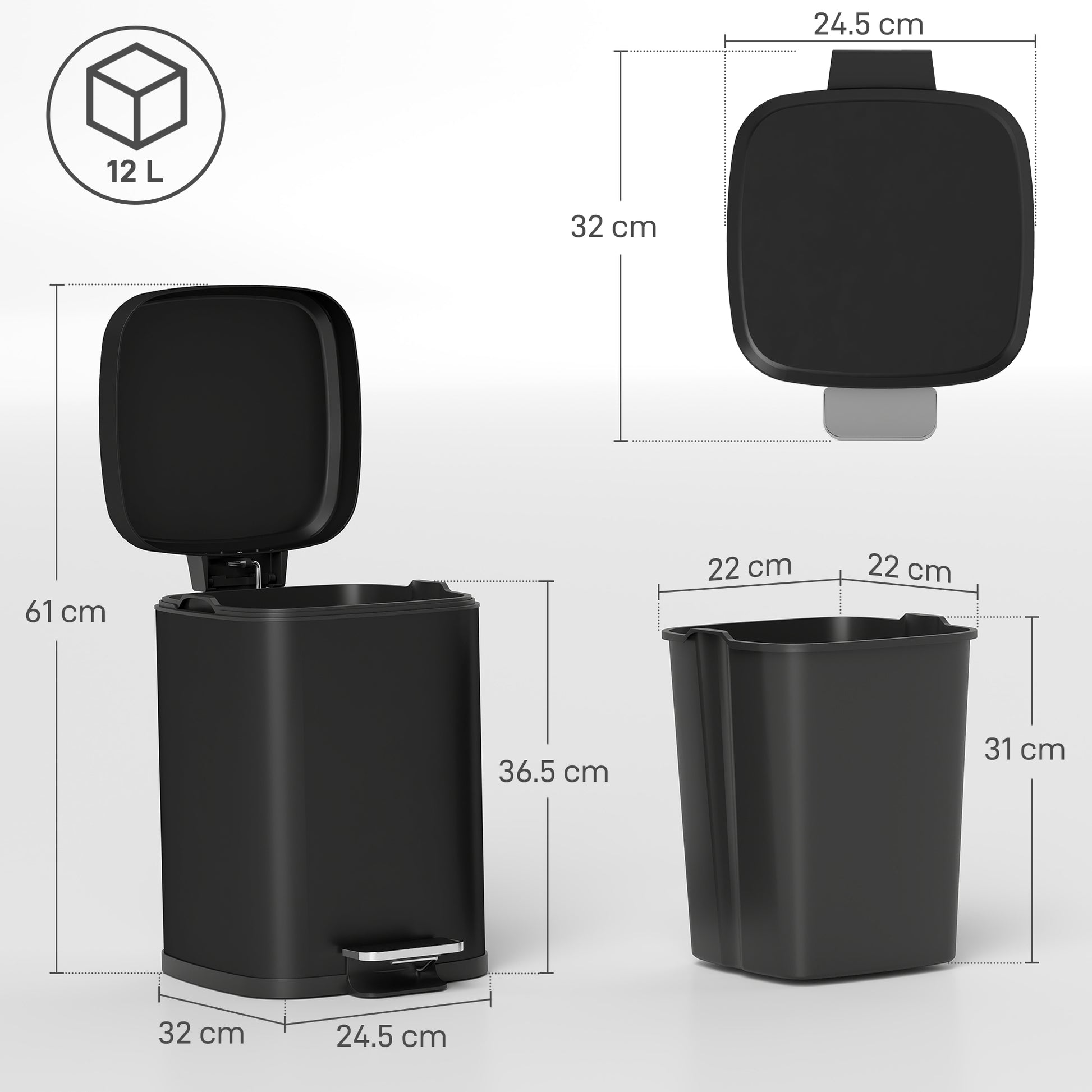 12L Modern Boxy Metal Home Kitchen Bin - Black