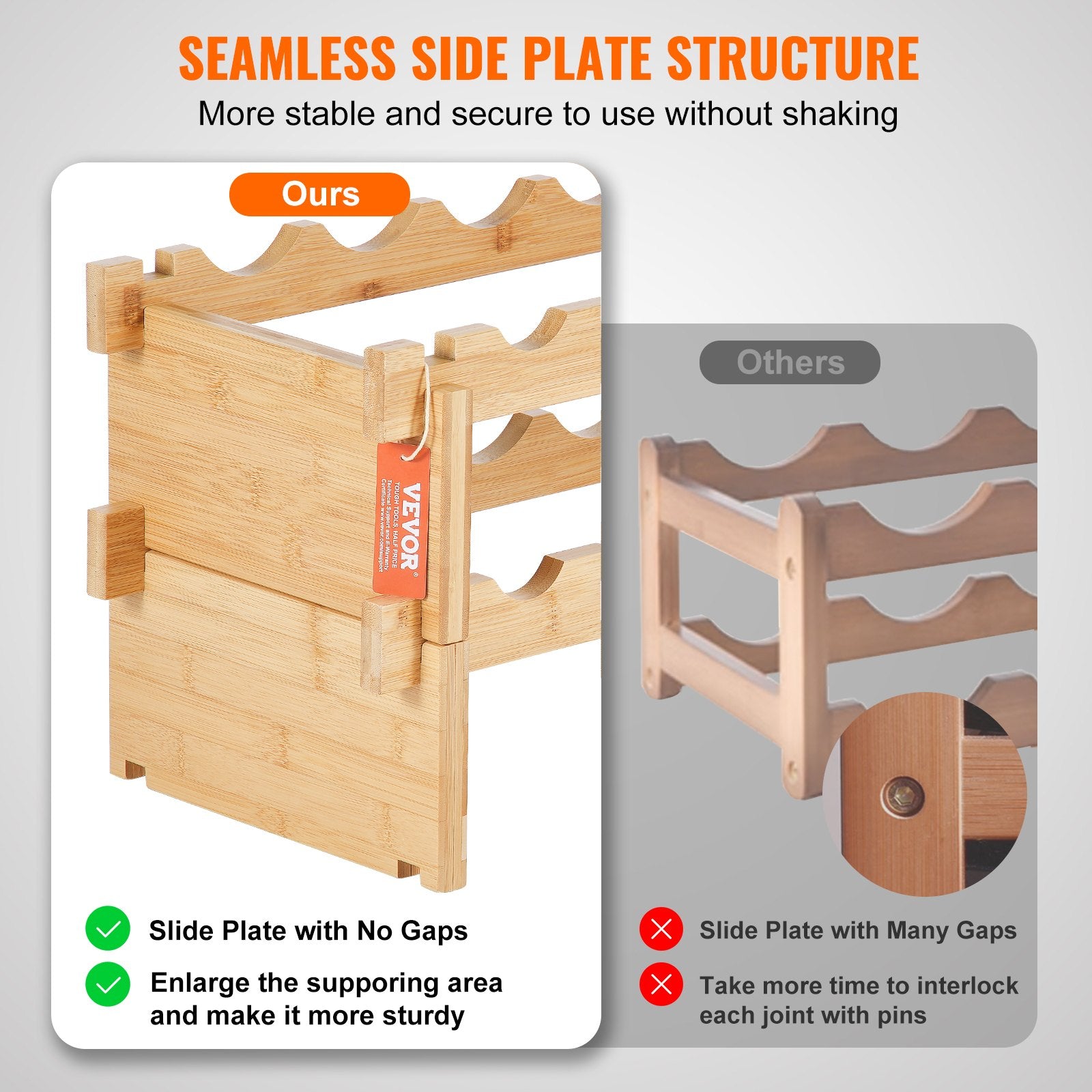 18 Bottle Stackable Modular Wine Rack, 2-Tier Solid Bamboo Wood Storage Racks, Floor Freestanding Wines Holder Display Shelf, Wobble-Free Shelves For Kitchen, Bar, And Cellar (Natural Color)